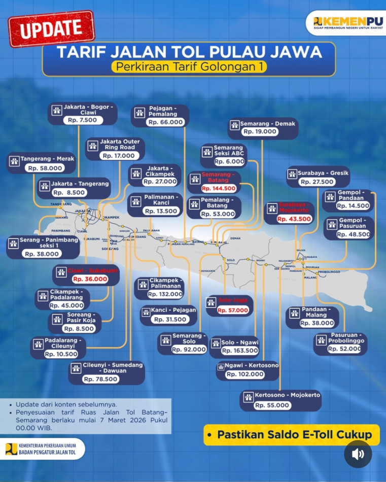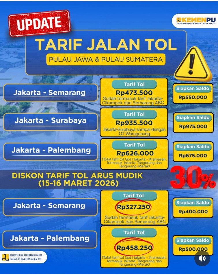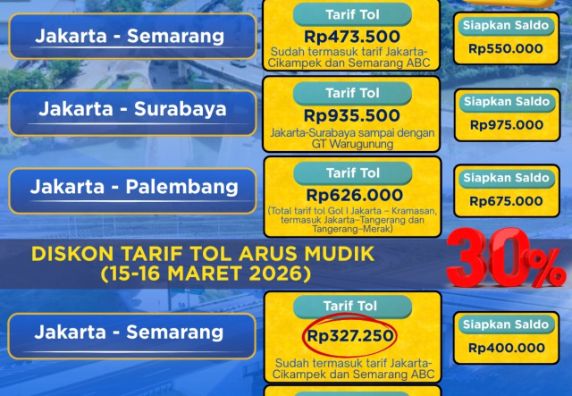 SEGINI TARIF TOL SETELAH MENGALAMI PENURUNAN TARIF 30% MUDIK LEBARAN