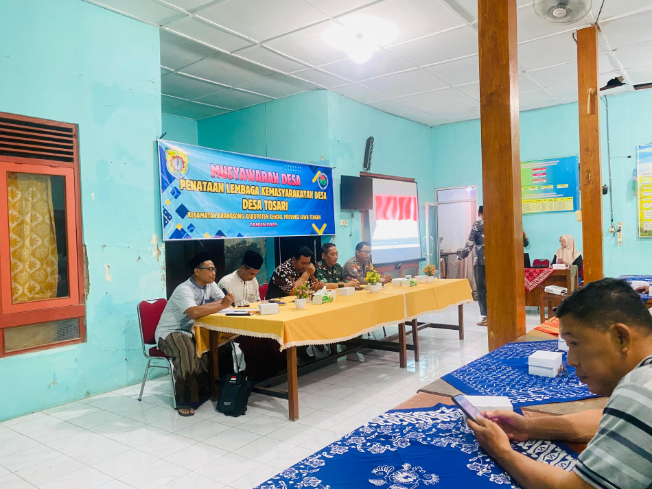 (tosari.kendalkab.go.id - 3/12/2025) Bertempat di Aula Desa Tosari. Dilaksanakan kegiatan Musyawarah Desa dengan Agenda Penataan Lemaga Kemasyarakatan Desa (LKD). yang dihadiri oleh Camat Brangsong, Danramil Brangsong, Babinsa, Babinkantibmas desa Tosari, Ketua BPD dan Anggota, Kepala Desa Tosari beserta Perangkat Desa Dan seluruh lembaga Kemasyarakatan desa.