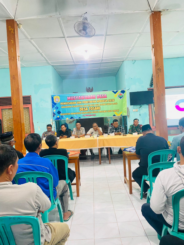 (tosari.kendalkab.go.id- Rabu, 31 Desember 2025) Pemerintah Desa bersama Badan Permusyawaratan Desa (BPD) Desa Tosari Kecamatan Brangsong telah melaksanakan Musyawarah Desa (Musdes) Penetapan Anggaran Pendapatan dan Belanja Desa (APBDes) Tahun Anggaran 2026. Kegiatan ini dilaksanakan sebagai tahapan penting dalam proses perencanaan dan pengelolaan keuangan desa yang transparan, partisipatif, dan akuntabel.